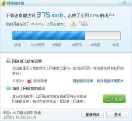 1. 使用在线测速工具:打开浏览器,搜索“网速测试”,选择一个信誉良好的网站进行测试。注意,测试时尽量关闭其他占用带宽的程序,如下载、视频播放等。